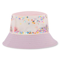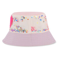 Ce bob BILLIEBLUSH illumine les sorties avec son mélange de tissu et de tulle parsemé de sequins étoiles qui captent la lumière à chaque mouvement. L’illustration cœur en bouclette apporte une touche douce et ludique, tandis que l’étiquette tissée rayée signe les jolis détails qu’on aime. Un accessoire fun et léger, parfait pour accompagner jeux, balades et journées ensoleillées avec style.