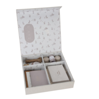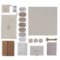 Cette boîte offre une multitude de possibilités pour conserver les moments clés de manière personnelle et créative. À l'intérieur de la boîte, vous trouverez un assortiment complet de beaux objets comprenant un livret, des étiquettes, de la ficelle de jute, des enveloppes, une feuille d'autocollants, des coins photo, des petites boîtes pour ranger les premières mèches de cheveux, les dents et tous souvenirs importants des sacs de rangement pour le premier vêtement ou accessoire et la tétine...