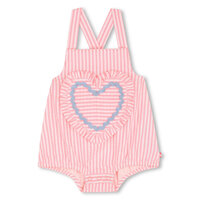 Rayée et pleine de douceur, cette combinaison BILLIEBLUSH séduit avec son cœur brodé et son petit volant plein de charme. Sa doublure légère et ses bretelles réglables assurent un confort parfait pour bouger librement, tandis que le biais fantaisie apporte une touche colorée et joyeuse. Une pièce idéale pour accompagner les journées ensoleillées avec style et légèreté.
